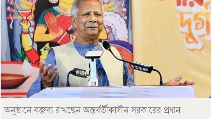 অন্তর্বর্তীকালীন সরকারের প্রধান উপদেষ্টা ড. মুহাম্মদ ইউনূস বলেছেন, ‘এবার দুর্গাপূজার আনন্দ বিশেষ আনন্দে পরিণত হয়েছে। দেশজুড়ে যেটা সবাই উপভোগ করছে। এ আনন্দ আরেকটু বেড়ে গেলো এজন্য, একদম নির্বিঘ্নে সব জায়গায় পূজার অনুষ্ঠান হচ্ছে। সবাই চেষ্টা করেছে, কোনও রকম দুর্ঘটনা যাতে না ঘটে, কোনও আতঙ্কজনক পরিস্থিতি যেন সৃষ্টি না হয়। এজন্য