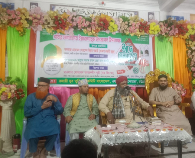 গতকাল শনিবার হযরত ছৈয়্যদেনা আবু বকর ছিদ্দিক (রাঃ) জামে মসজিদ ময়দানে রজায়ী যুব ত্বরিকত কমিটি বাংলাদেশ এর চেয়ারম্যান পীরজাদা আলহাজ্ব মোহাম্মদ খোরশদ উল্লাহ্ রজায়ী (মাঃজিঃআঃ)'র সভাপতিত্বে অনুষ্ঠিত হয়। মাহফিলে শাহজাদা মাওলানা নাঈম উদ্দীন রজায়ী ও শাহজাদা ইমাম উদ্দীন রজায়ীর যৌথ সঞ্চালনায় প্রধান ওয়ায়েজিন হিসেবে তকরির করেন রাউজান উরকিরচর মোহাম্মদীয়া গাউছিয়া সুন্নিয়া সিনিয়র মাদ্রাসার অধ্যক্ষ বিশিষ্ট ইসলামি চিন্তাবীদ আল্লামা অধ্যক্ষ হাসান রেজা আলকাদেরী (মাঃজিঃআঃ)। বিশেষ বক্তা হিসেবে তকরির করেন, না'লাইন ই- মোস্তফা সাঃ - তাহফিজুল কোরআন মডেল মাদ্রাসা ও চন্দনাইশ হযরত শাহ সূফী আলী রজা ও একরাম শাহ (রহঃ) এতিমখানার প্রতিষ্ঠাতা ও পরিচালক মাওলানা মোহাম্মদ কামরুদ্দীন নূরী (মাঃজিঃআঃ), মাওলানা আমজাদ হোসেন আল কাদেরী। উক্ত মাহফিলে সভাপতির বক্তব্যে পীরজাদা আলহাজ্ব মোহাম্মদ খোরশেদ উল্লাহ রজায়ী বলেন, বেলায়তের সম্রাট হলেন বড়পীর শেখ সুলতান সৈয়দ মহিউদ্দিন আব্দুল কাদের জিলানী (রা.)।