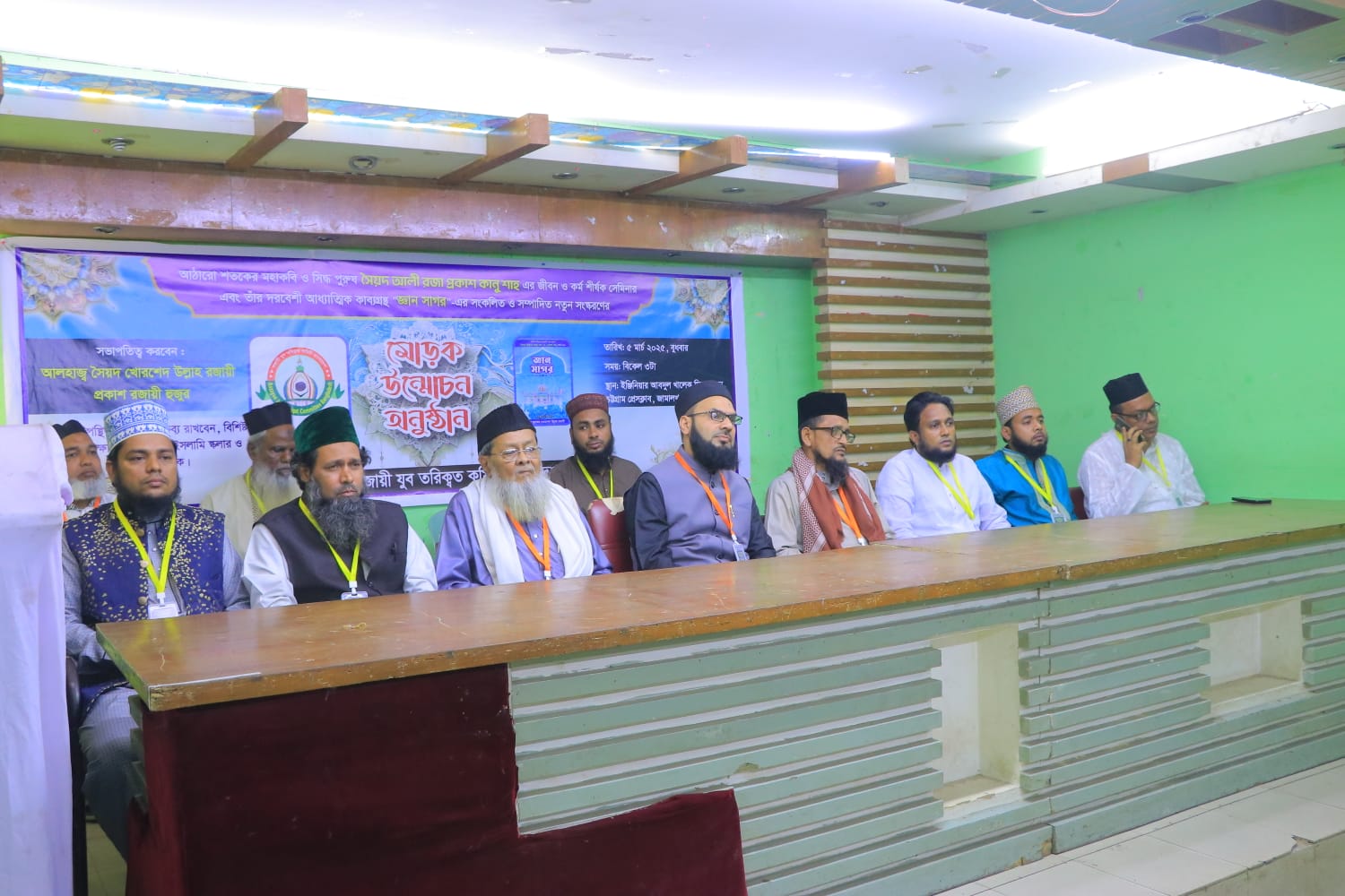 আজ ৫ ই মার্চ, ২০২৫ ইং, বুধবার বিকাল ৩ টায় চট্টগ্রাম প্রেসক্লাব' র ইন্জিনিয়ার আবদুল খালেক মিলনায়তনে আঠারো শতকের মহাকবি, সিদ্ধ পুরুষ, চার ত্বরিকার পীর, বেলায়তের সম্রাট,কবি ও সাধক শাহছুফি আল্লামা আলী রজা প্রকাশ কানু শাহ্(র.)'র জীবন ও কর্ম শীর্ষক সেমিনার, দোয়া, মিলাদ মাহফিল এবং তাঁর দরবেশী আধ্যাত্মিক কাব্যগ্রন্থ "জ্ঞান সাগর" বইয়ের সংকলিত ও সম্পাদিত নতুন সংস্করণের মোড়ক উম্মোচন করা হয়েছে।ওষখাইন রজায়ী দরবার শরীফ'র সাজ্জাদানশীন ও রজায়ী যুব ত্বরিকত কমিটি বাংলাদেশ'র প্রতিষ্ঠাতা ও চেয়ারম্যান শাহজাদা আলহাজ্ব সৈয়দ মোহাম্মদ খোরশেদ উল্লাহ্ রজায়ী প্রকাশ রজায়ী হুজুর এর সভাপতিত্বে, সাংবাদিক মোহাম্মদ রফিকুল ইসলাম'র পরিচালনায়,মোহাম্মদ মুনিরুল ইসলাম আশরাফি ও এস.এম ইমাম উদ্দীন'র দিকনির্দেশনায় মোড়ক উম্মোচন অনুষ্ঠানে প্রধান অতিথি হিসেবে উপস্থিত ছিলেন আহলে সুন্নাত ওয়াল জামায়াত বাংলাদেশ' র চেয়ারম্যান মাওলানা কাজী মুঈনুদ্দিন আশরাফী।