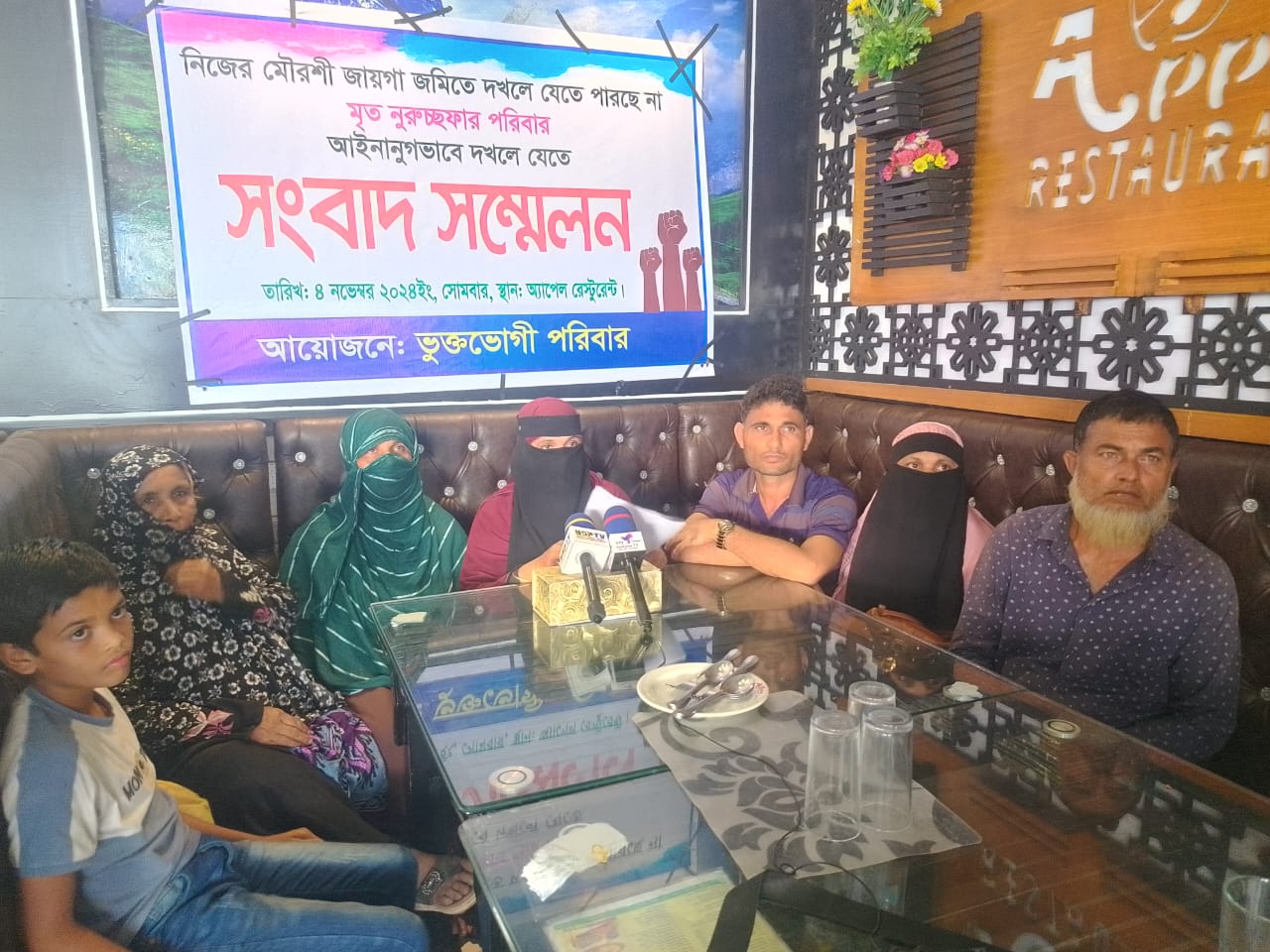 চট্টগ্রামের সাতকানিয়া এওচিয়া ইউনিয়নের পশ্চিম গাটিয়া ডেংগা নুরুচ্ছাফা পরিবারের জায়গা জমি দখলের অভিযোগ এনে সংবাদ সম্মেলন করেছেন একই এলাকার আলতাফ মিয়ার ছেলে নুরুল আমিন গং দের বিরুদ্ধে।গতকাল (৪ নভেম্বর) মঙ্গলবার উপজেলার কেরানিহাট এ্যাপোলো রেস্টুরেন্টে,বিকাল ৩ টার সময় উক্ত সংবাদ সম্মেলন অনুষ্ঠিত হয়। সংবাদ সম্মেলনে লিখিত বক্তব্য পাঠ করেন মৃত নুরুচ্ছফা পরিবারের মেজ ছেলে মোহাম্মদ জাফর। তিনি অভিযোগ করে বলেন- আমার বাবার জায়গা জমি দীর্ঘদিন যাবৎ জোরপূর্বক দখলে থেকে ভোগ করতেছেন ৯ নম্বর ওয়ার্ড মুনার পাড়া গ্রামের আলতাফ মিয়ার ছেলে।মোঃ আমিন, মৃত কালুর পুত্র আবদুল আলিম মিয়া। লিখিত বক্তব্যে বলা হয় আমার পিতা বেঁচে থাকা অবস্থায় আমাদের বলে গেছেন তার জায়গা কোন রেজিস্ট্রি সম্পাদন করেন নাই। প্রতিপক্ষ মোঃ আমিন গং বলছেন নুরচ্ছফা টিপ সহির মাধ্যমে তার অংশ রেজিস্ট্রি দেন,কিন্তু আমাদের অভিযোগ আমার পিতা টিপসহ দিয়ে কোন রেজিস্ট্রি দেন নাই। আমার পিতার জায়গায় অন্য কাউকে দিয়ে তারা টিপ সই নিয়ে রেজিস্ট্রি সম্পূর্ণ করেন। নুরুল আমিন গং আমার ফুফুদের জায়গা জোরপূর্বক জবর দখলে আছেন।সাতকানিয়া থানায় ও উপজেলা নির্বাহী কর্মকর্তা (ইউএনও)বরাবর প্রতিকার চেয়ে অভিযোগ দায়ের করেছি।আমার পরিবারের দাবি কাগজপত্র মোতাবেক আমাদের জায়গা বুঝিয়ে দেওয়া হোক।এই বিষয়ে সাতকানিয়া থানার অফিসার ইনচার্জ মোঃ মোস্তফা কামাল খাঁন বলেন- সম্প্রতি জায়গা জমি বিরোধ নিয়ে বিগত ২৭ অক্টোবর একটা অভিযোগ পেয়েছি।উক্ত বিষয়ে তদন্ত চলতেছে।অভিযোগের সত্যতা পেলেই আইনগত ব্যবস্থা গ্রহণ করা হবে।সাতকানিয়া উপজেলা নির্বাহী কর্মকর্তা (ইউএনও)মিল্টন বিশ্বাস বলেন এওচিয়া ইউনিয়নের জাফর নামের এক ব্যক্তি তার বাপ দাদার সম্পত্তি দখলের দাবিতে একটি অভিযোগ করেছেন।আমরা উভয় পক্ষের সাথে সরাসরি বসে কাগজপত্র যাচাই-বাছাই করে উক্ত বিষয়ে নিষ্পত্তির ব্যবস্থা করবো।