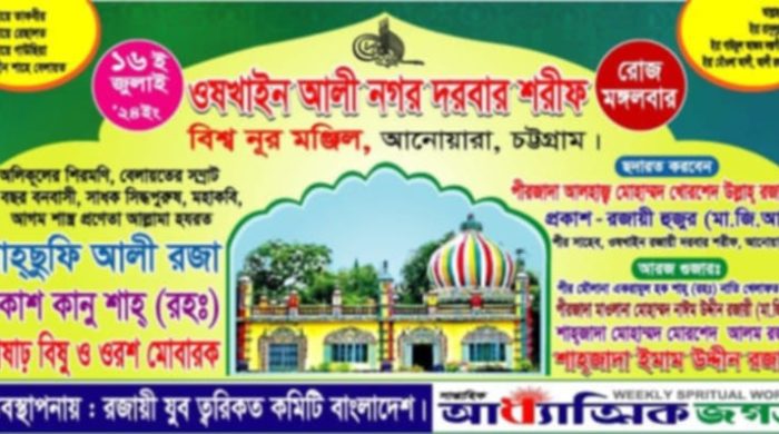 চট্টগ্রামের আনোয়ারায় ঐতিহ্যবাহী ওষখাইন আলী নগর রজায়ী দরবার শরীফে রজায়ী যুব ত্বরিকত কমিটি বাংলাদেশ’র ব্যবস্থাপনায় ও সাপ্তাহিক আধ্যাত্মিক জগত পত্রিকার সৌজন্যে প্রাণ পুরুষ আওলাদে ছিদ্দিকে আকবর (রা:), পাচঁ ত্বরিকার পীর,৩৬বছর